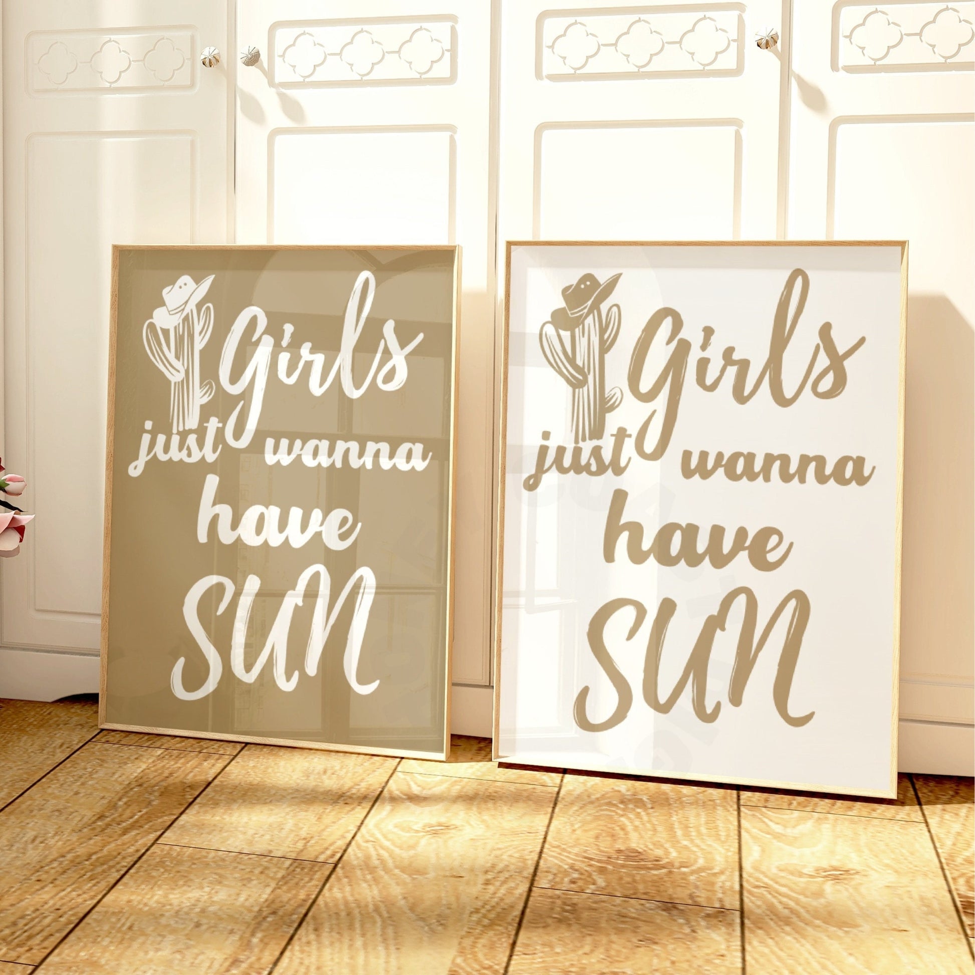 Beige Girls Just Wanna Have Sun Digital Prints, Set Of 2