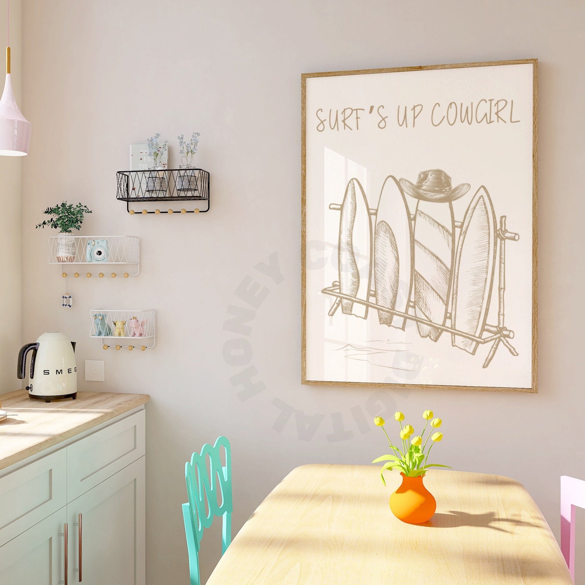 Kick off your cowboy boots and grab your surfboard, we have just the trendy wall print you need to spice up your preppy apartment even more!Coastal Cowgirl Typography digital poster can definitely add some fresh and fun coastal cowgirl flair to your home, dorm, office, or bar. Everyone knows you work hard, so let's show them you know how to play hard as well!