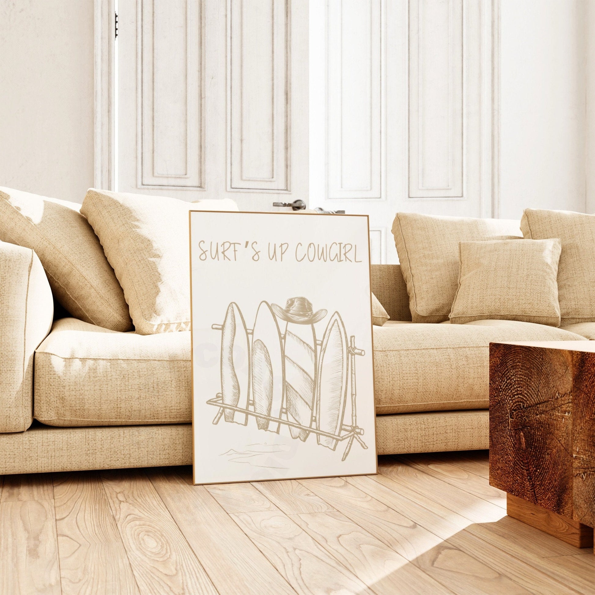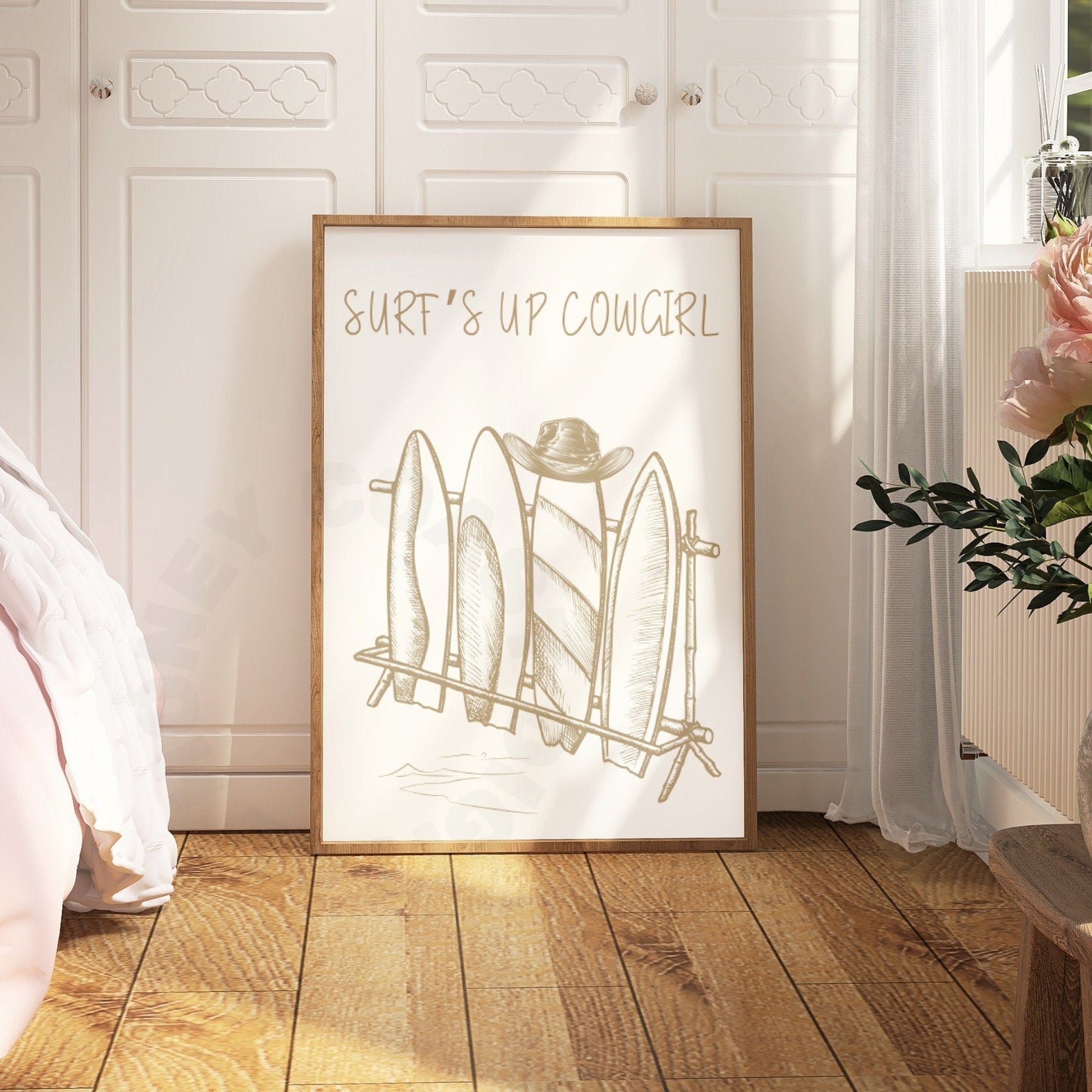 Beige Surf's Up Cowgirl Surfboards & Cowboy Hat Digital Prints