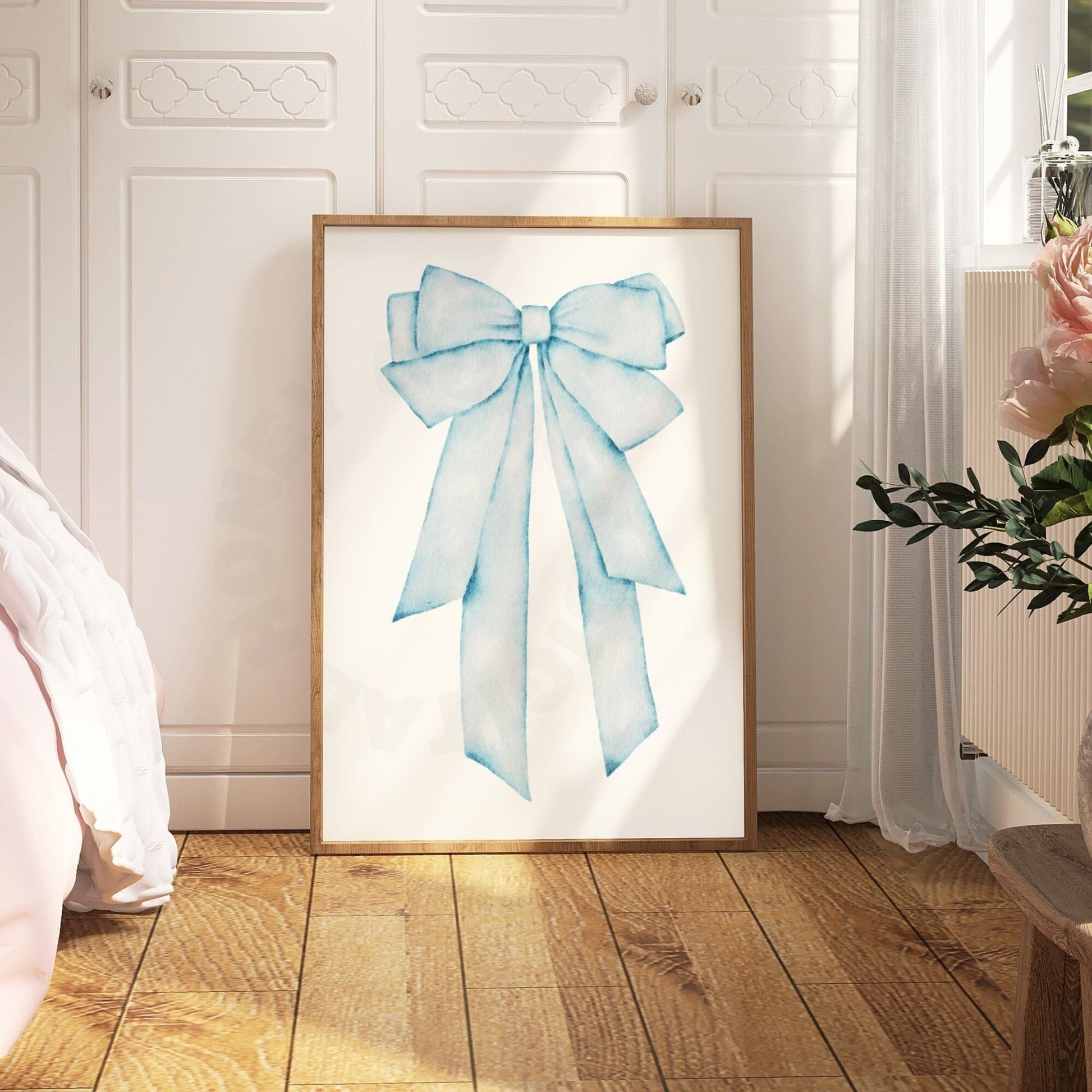 Kick off your cowboy boots and grab your surfboard, we have just the trendy wall print you need to spice up your preppy apartment even more! Pastel Blue Coquette Bow digital poster can definitely add some fresh and fun coastal cowgirl flair to your home, dorm, office, or bar. Everyone knows you work hard, so let's show them you know how to play hard as well!