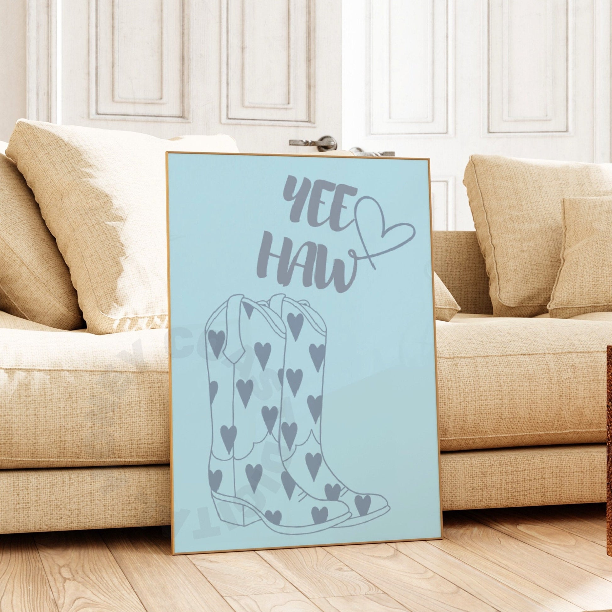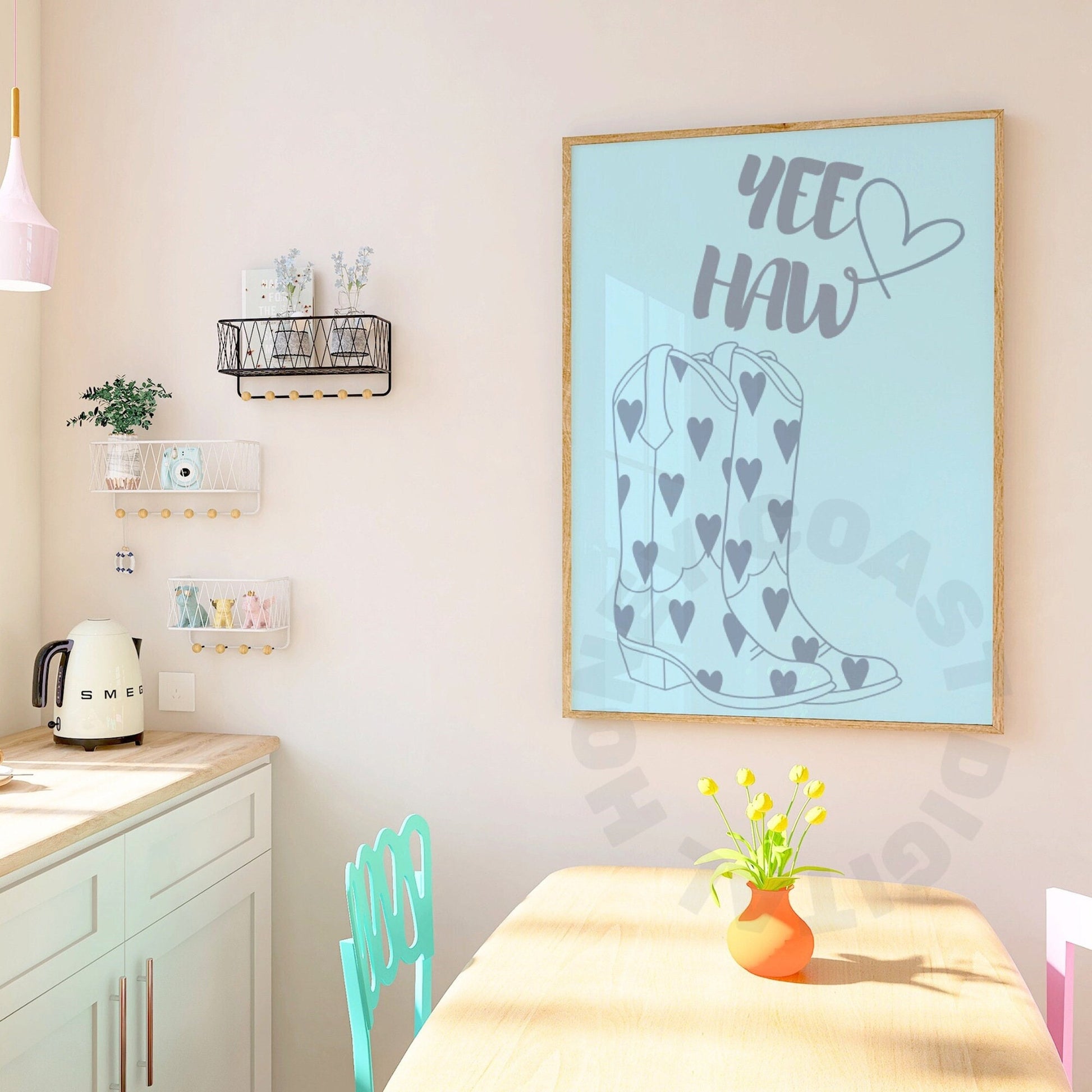 Kick off your cowboy boots and grab your surfboard, we have just the trendy wall print you need to spice up your preppy apartment even more! Coastal Cowgirl Typography digital poster can definitely add some fresh and fun coastal cowgirl flair to your home, dorm, office, or bar. Everyone knows you work hard, so let's show them you know how to play hard as well!