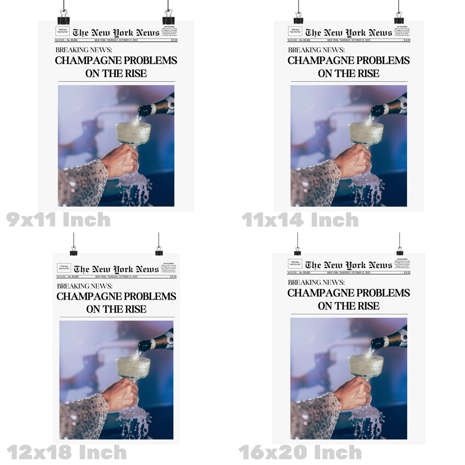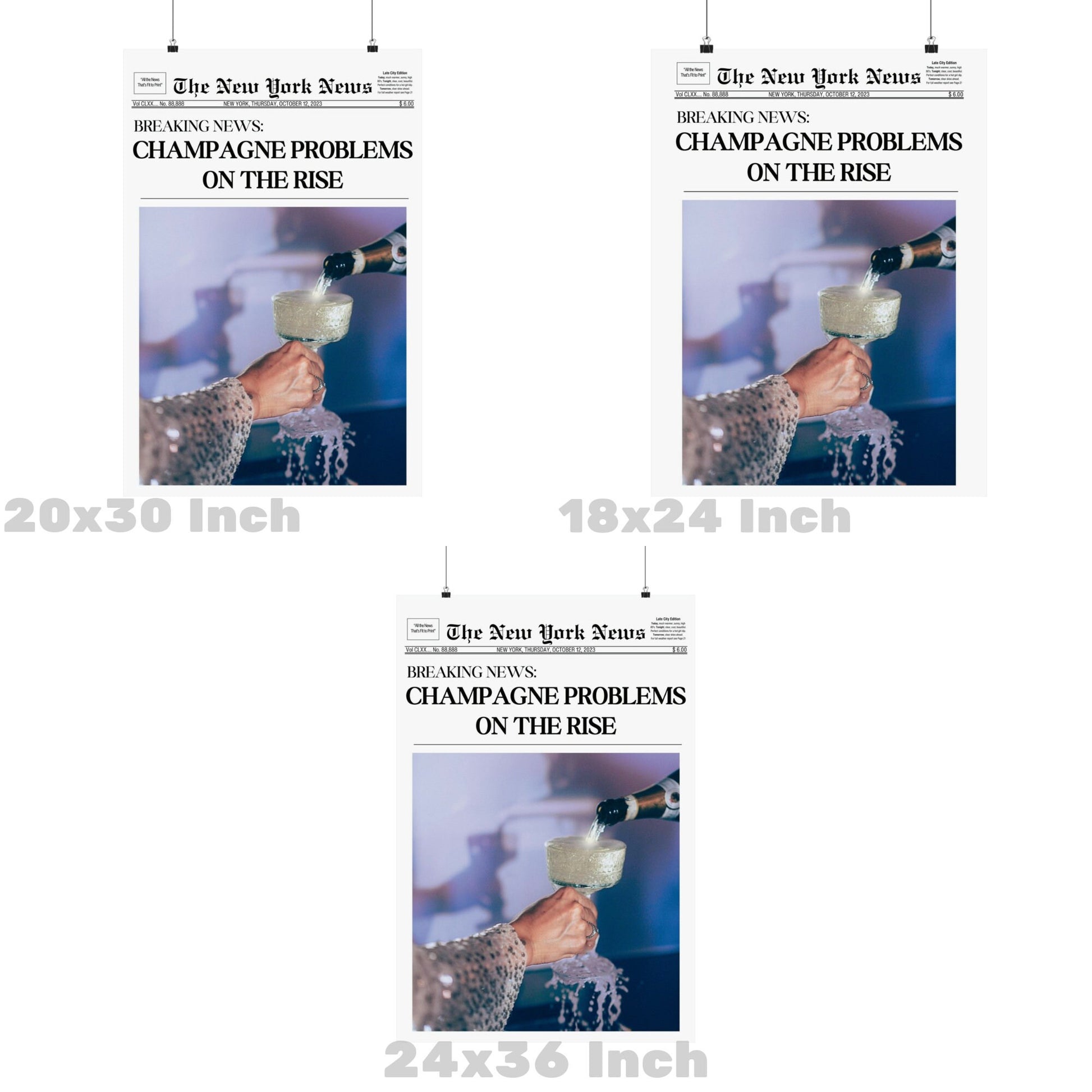 Blue Champagne Problems Newspapers Poster