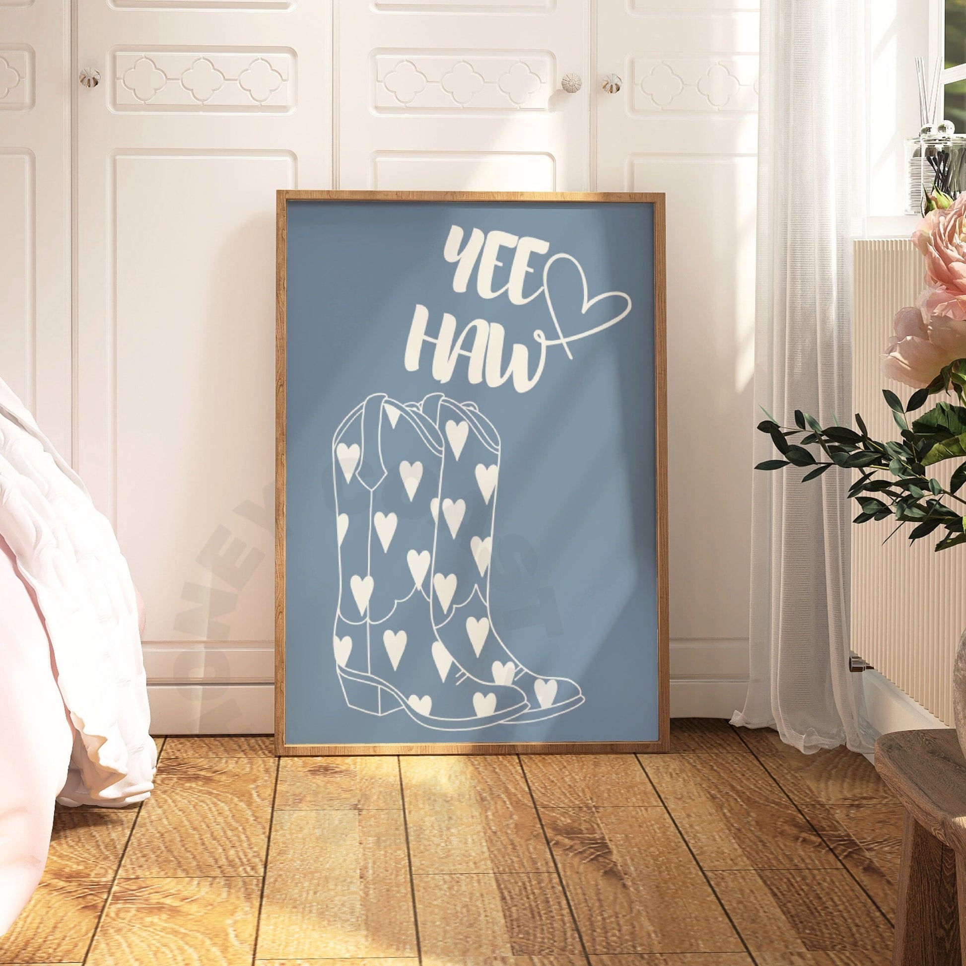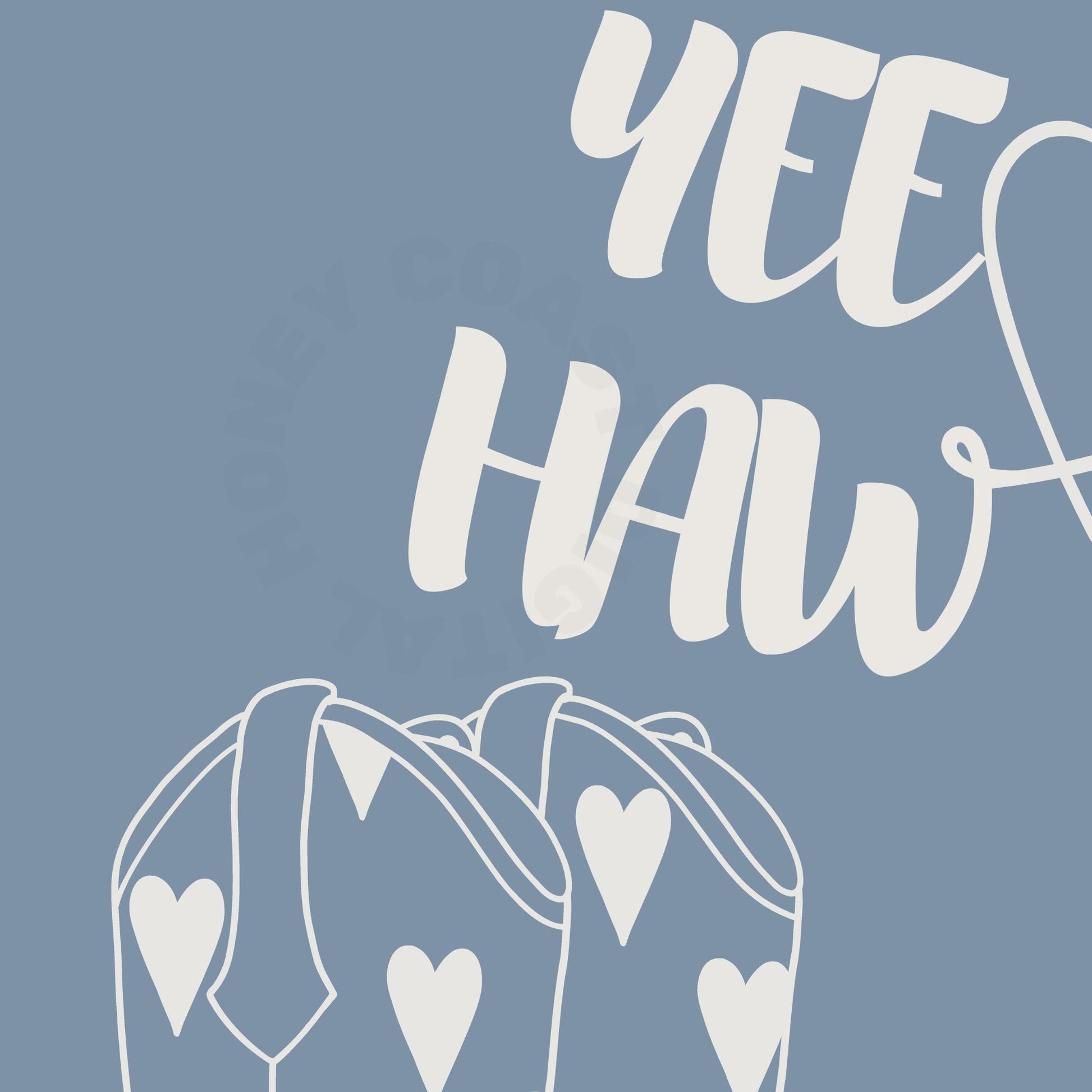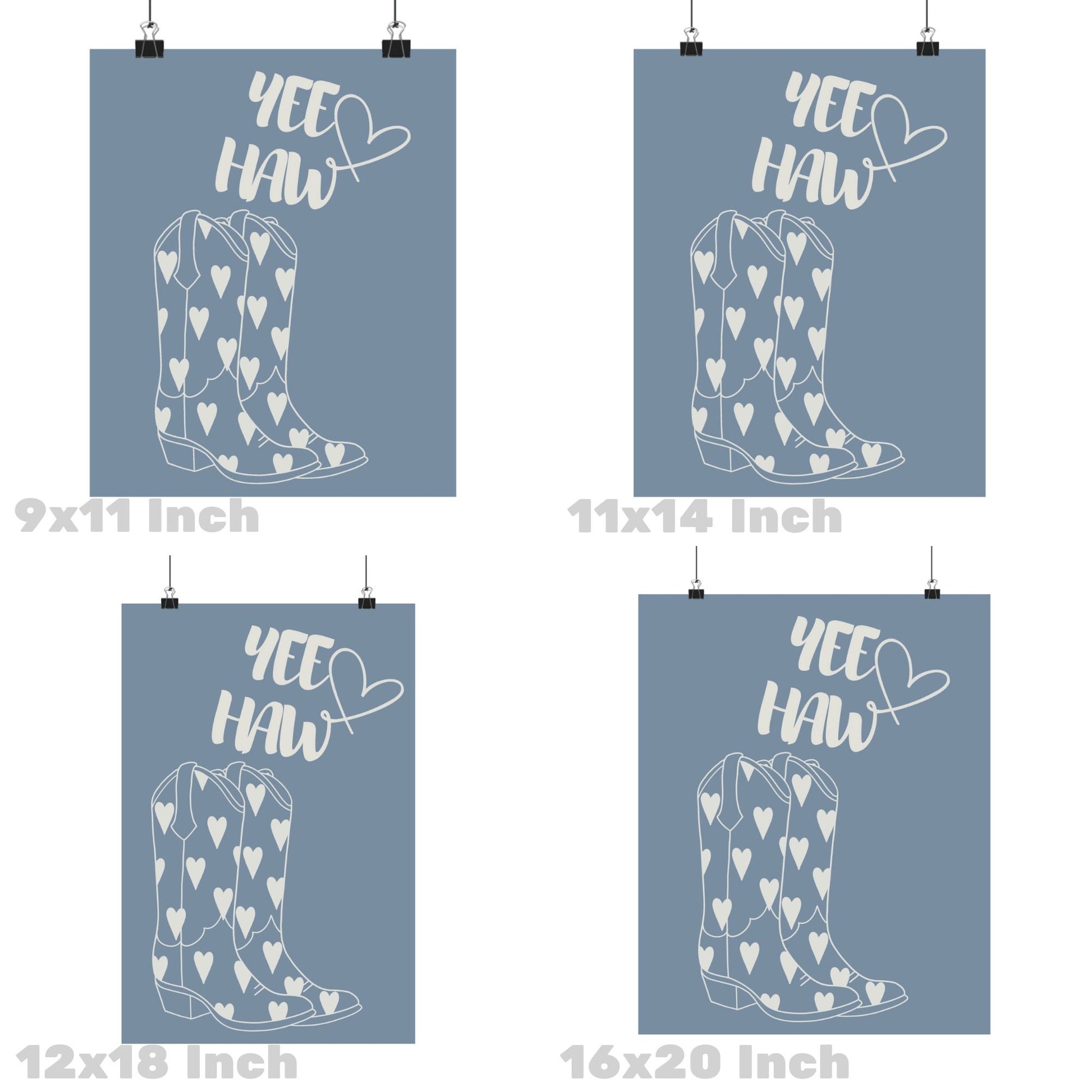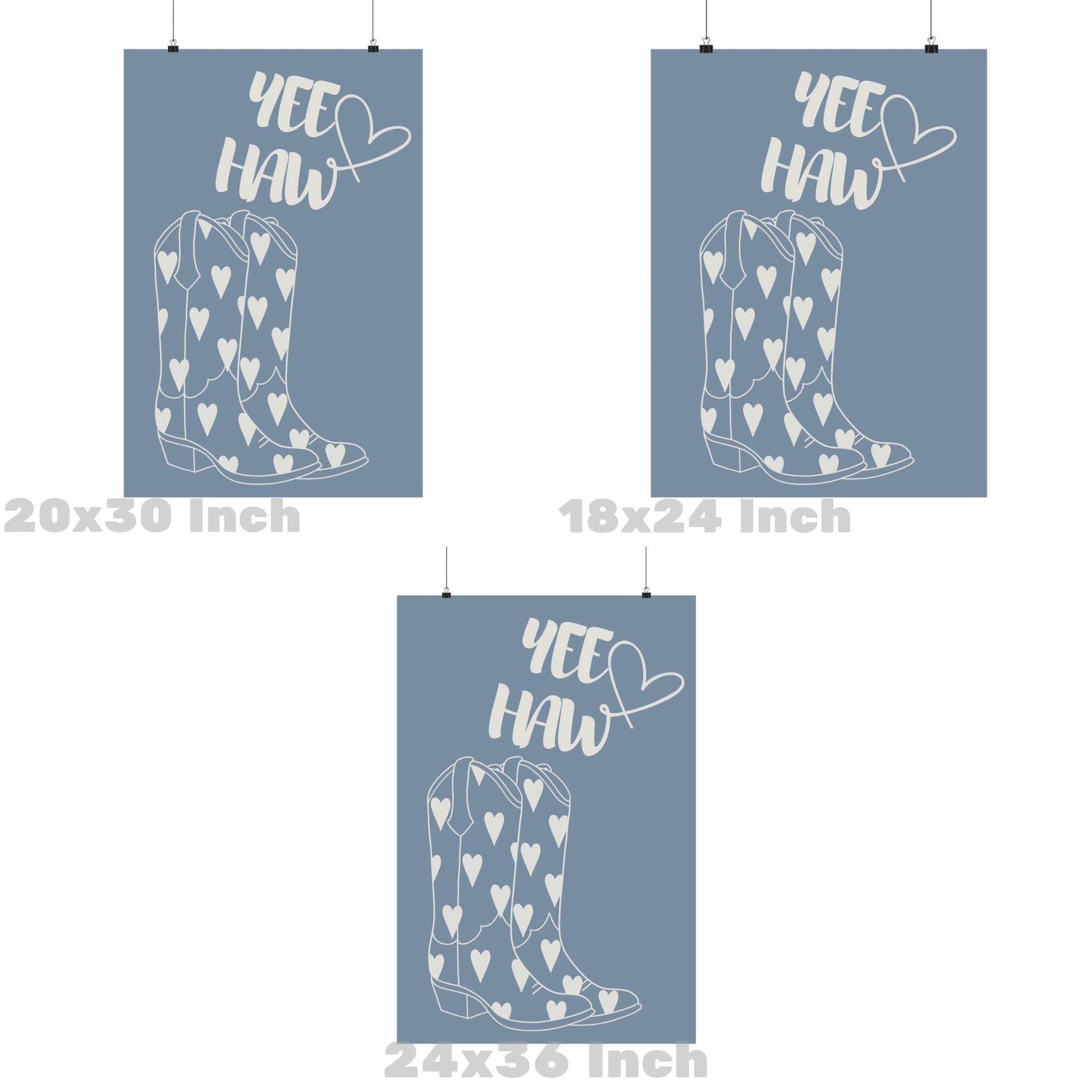 Coastal Blue Cowboy Boots Yee Haw Poster