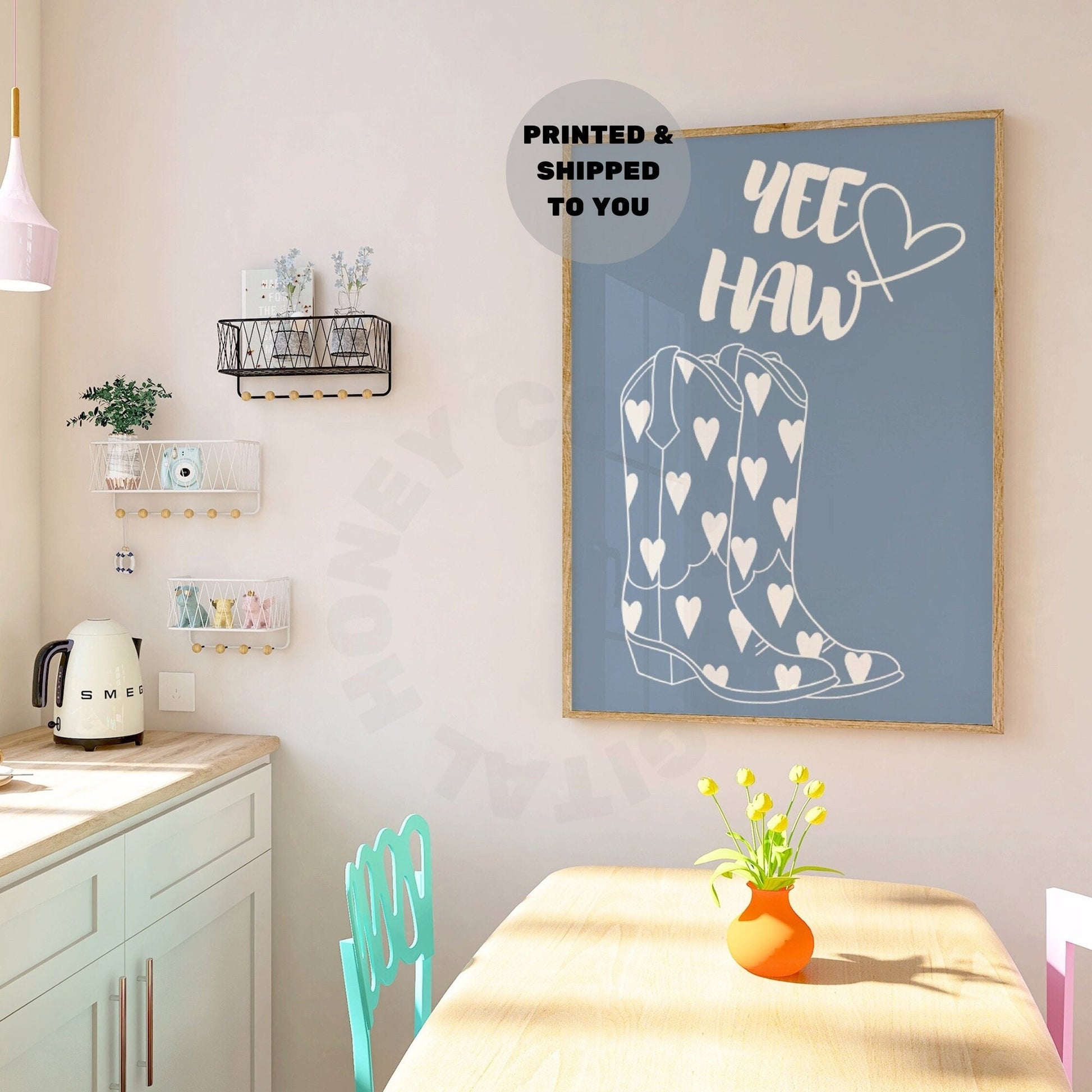 Kick off your cowboy boots and grab your surfboard, we have just the trendy wall print you need to spice up your preppy apartment even more! Coastal Blue poster can definitely add some fresh and fun coastal cowgirl flair to your home, dorm, office, or bar. Everyone knows you work hard, so let's show them you know how to play hard as well!