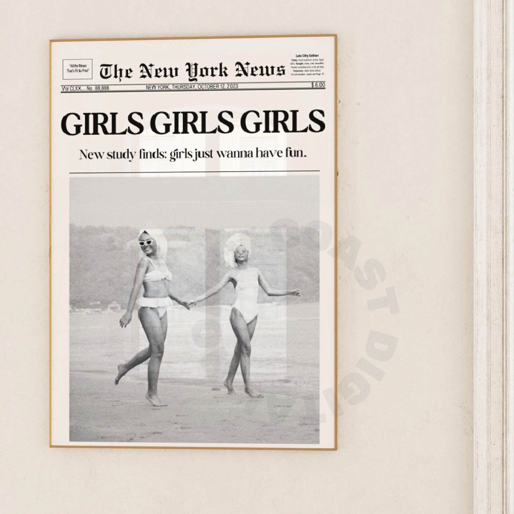 Monotone Girls Girls Girls Newspaper Digital Prints