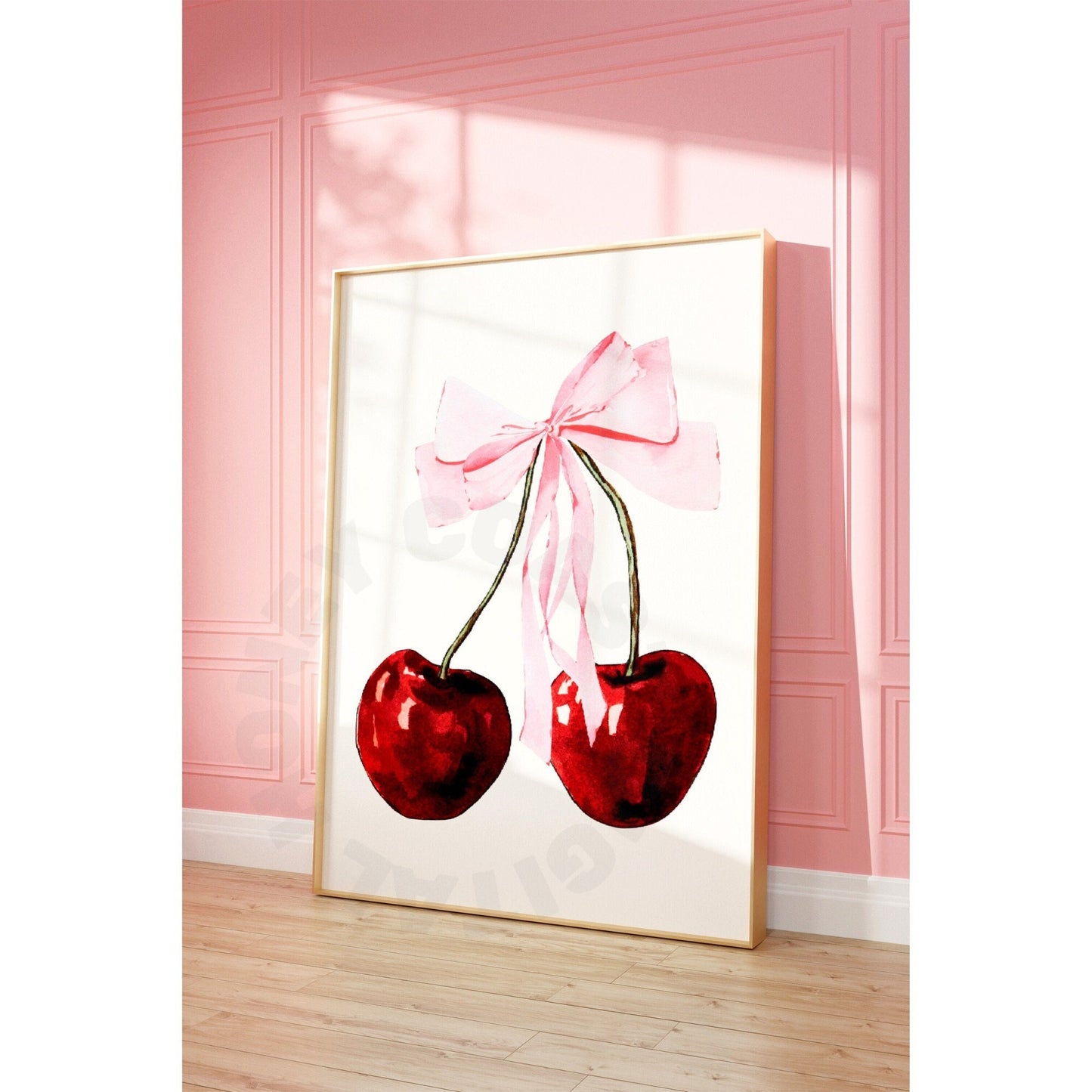 Pink Cherry Hair Bow Digital Prints