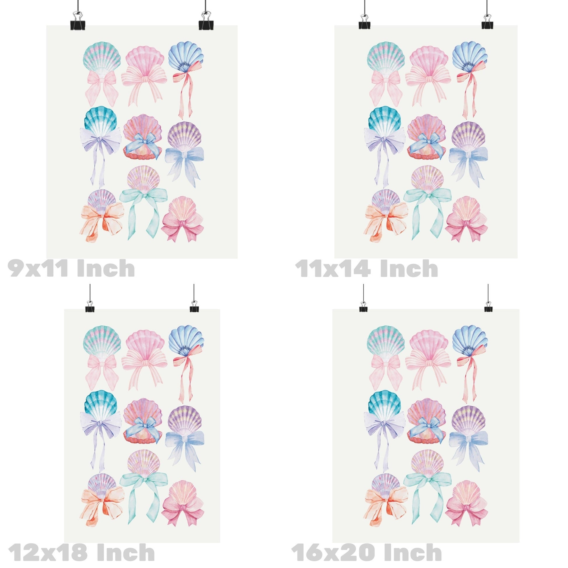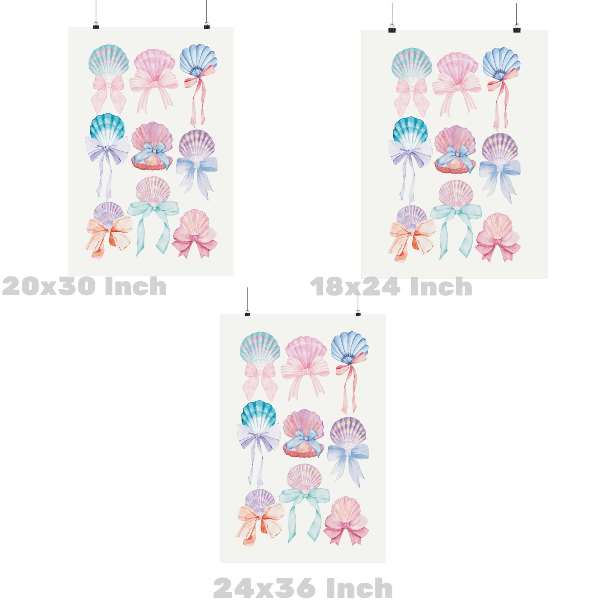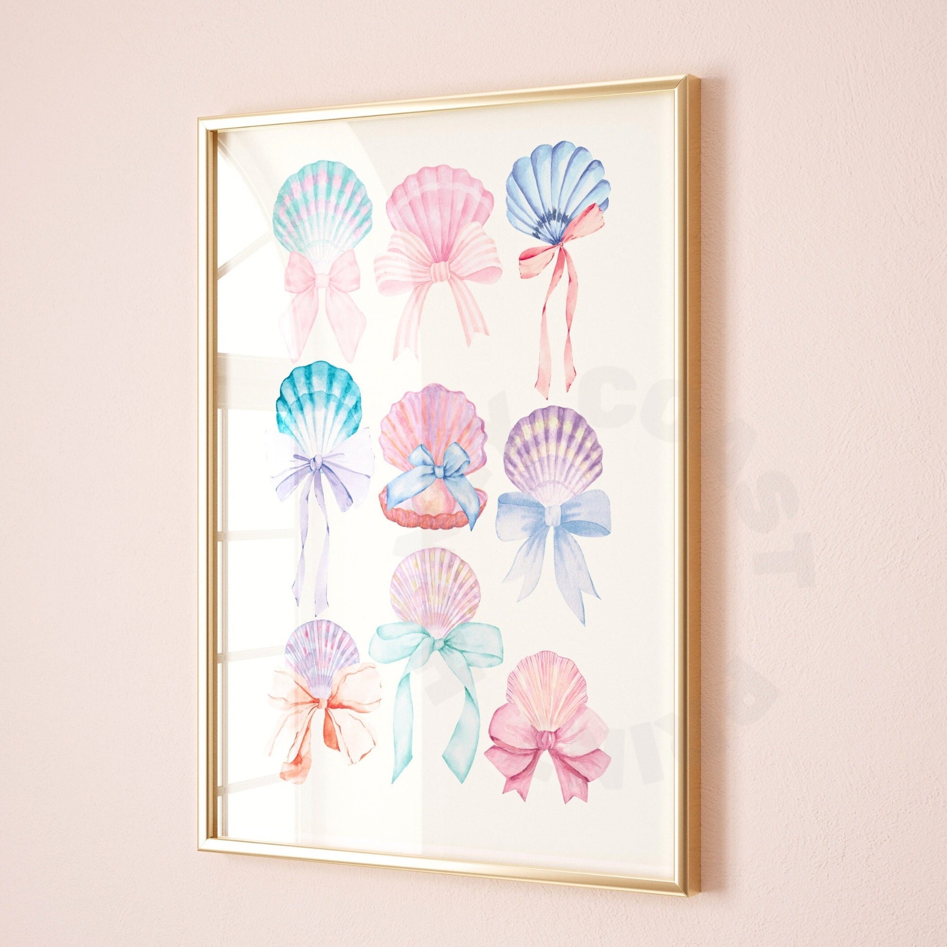 Watercolor Pastel Seashells And Bows Poster