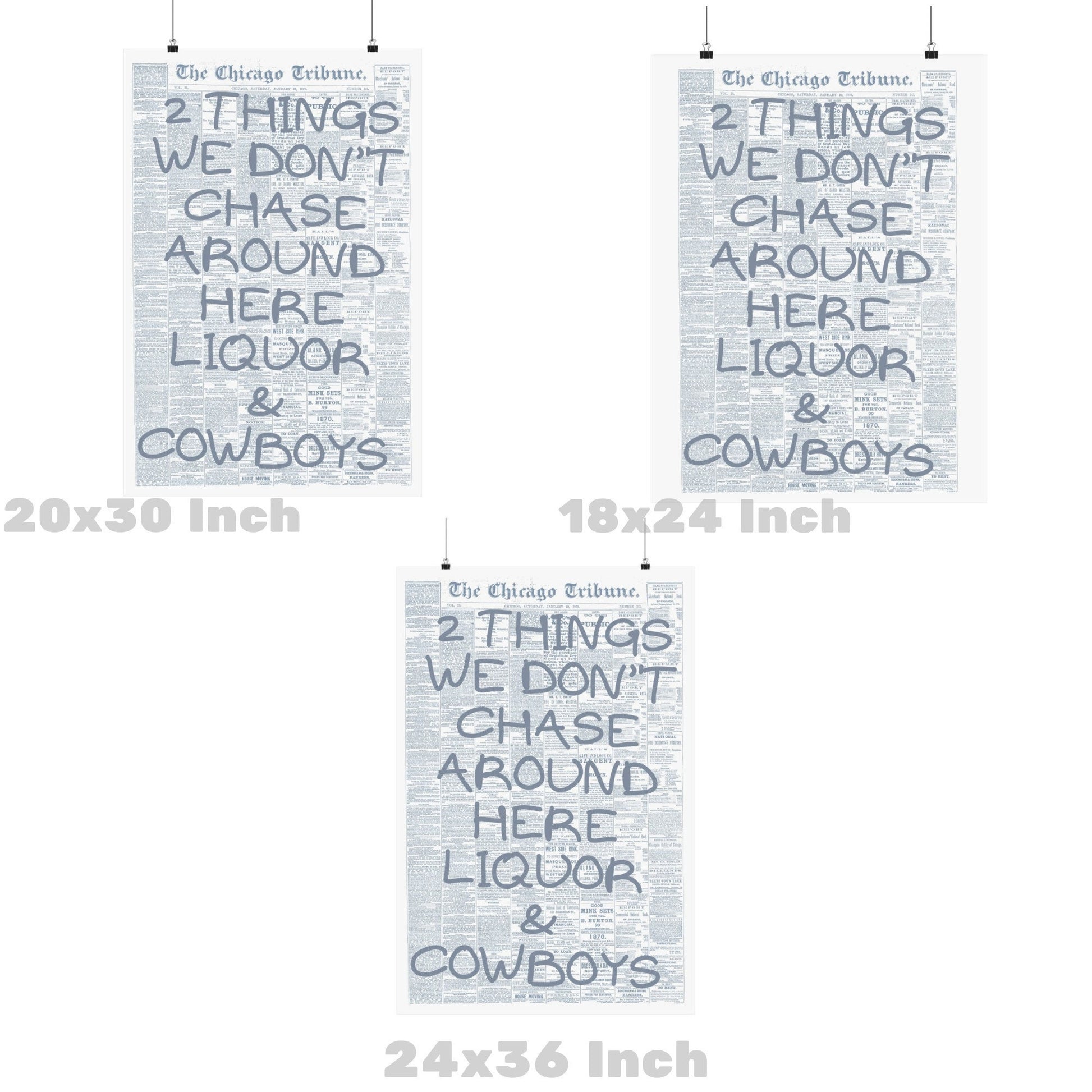 We Don't Chase Around Here Liquor & Cowboys Newspaper Poster